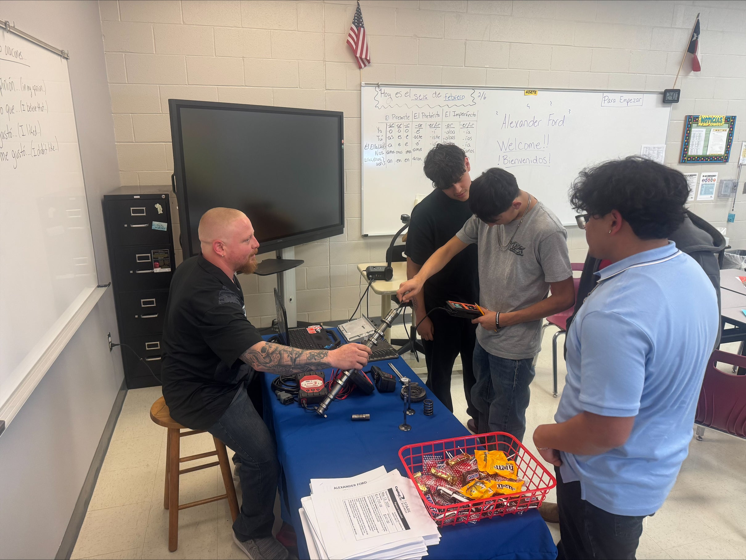 Kyle Wiatrek (Shop Foreman) speaks to students about automotive technology and potential job opportunities at the 2025 Karnes City High School Career Day.