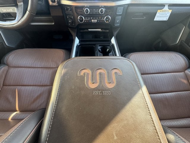 Voice Activated Dual Zone Front Automatic Air Conditioning w/Steering Wheel Controls, Urethane Gear Shifter Material, Upfitter Switches, Unique King Ranch Leather 40/Console/40 Seats -inc: multi-contour Kingsville Antique Affect leather seating surfaces, dual integrated cupholders in armrest, 2 outboard head restraints, heated/ventilated seating, 8-way power driver and passenger seat (4-way power-adjustable track, 2-way power recline and 2-way power lumbar), 2-way adjustable driver/passenger headrests and easy entry driver's seat w/memory, Trip Computer, Transmission: TorqShift 10-Speed Automatic -inc: SelectShift and selectable drive modes: normal, eco, slippery roads, tow/haul and off-road, Transmission w/Driver Selectable Mode and Oil Cooler, Trailer Wiring Harness, Tires: LT275/65Rx20E BSW A/T (4) -inc: Spare may not be the same as road tire, Tire Specific Low Tire Pressure Warning.
